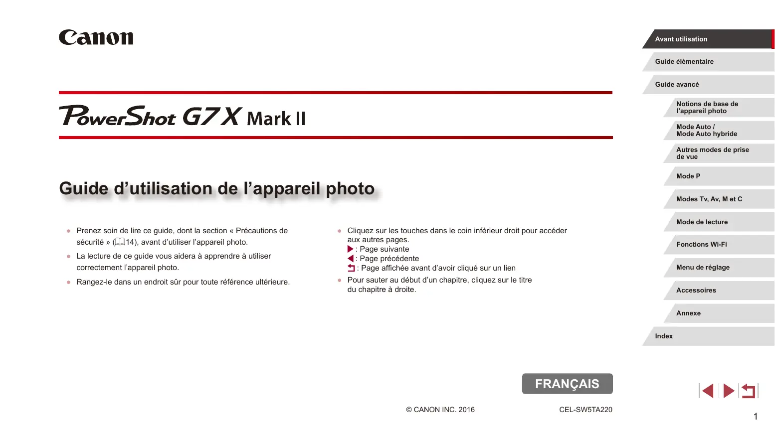 Avant utilisation Guide élémentaire Guide avancé