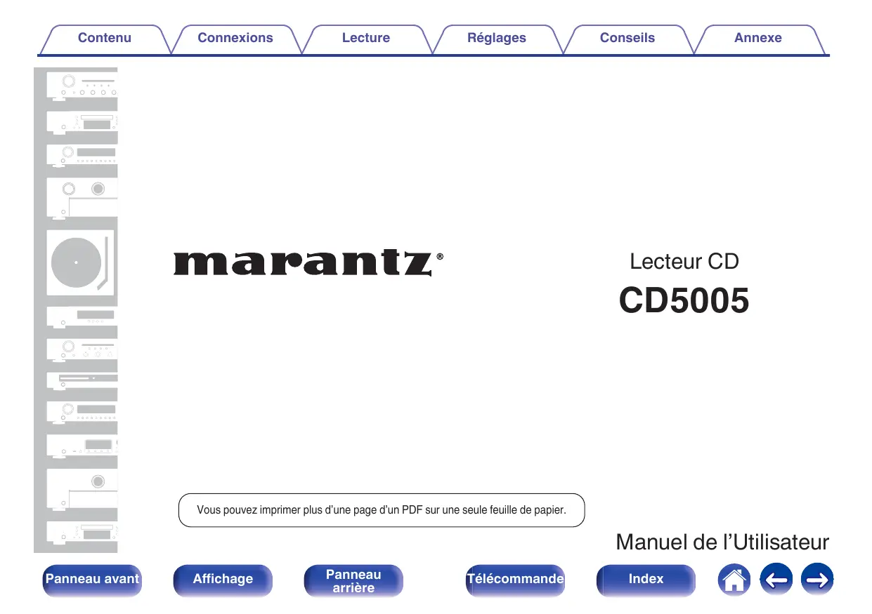 5005 - CD5005 - Lecteur CD MARANTZ - Notice d'utilisation et mode d'emploi gratuit