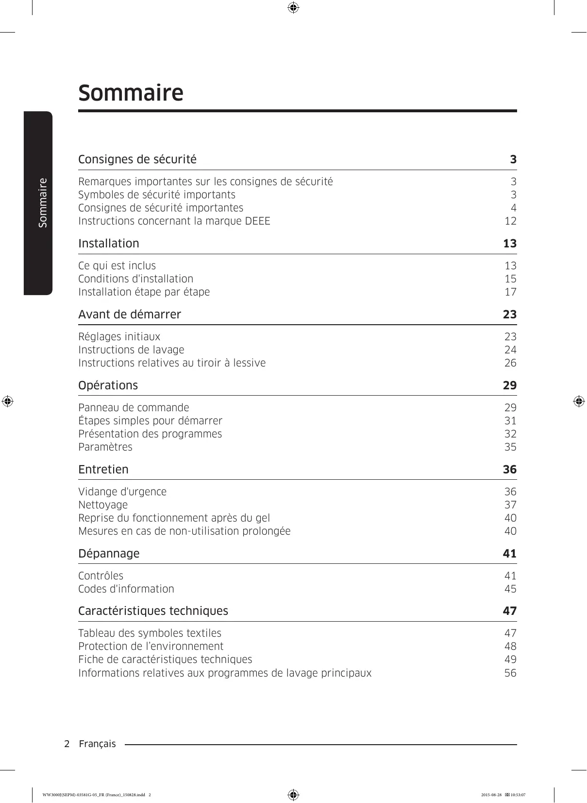 - Si le code d'information subsiste, contactez un centre de réparation. Français WW3000J(SEPM)-03581G-05_FR (France)_150828.indd 45 2015-08-28