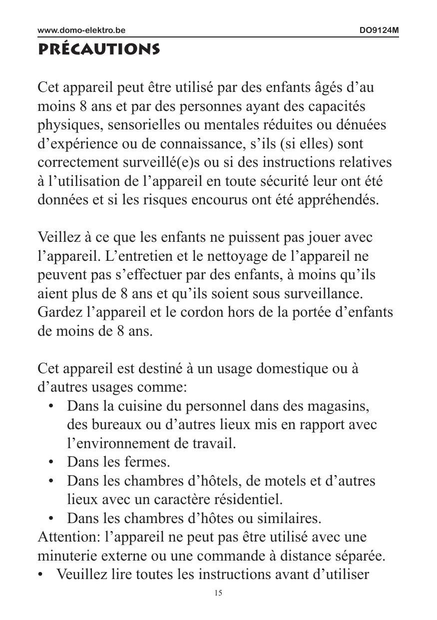 Retrouvez gratuitement la notice de l'appareil DO9124M DOMO au format PDF.