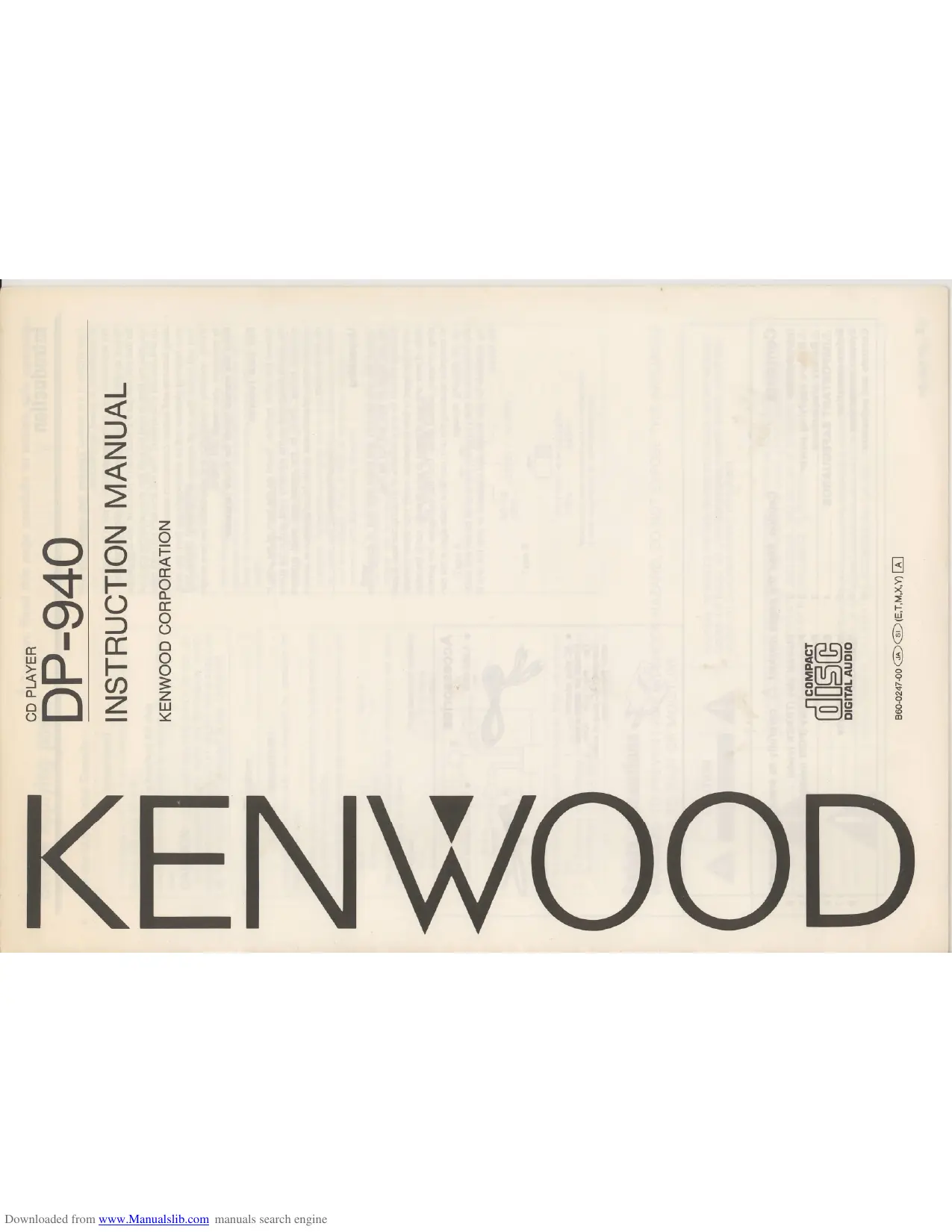 DP 940 - Lecteur CD KENWOOD - Notice d'utilisation et mode d'emploi gratuit
