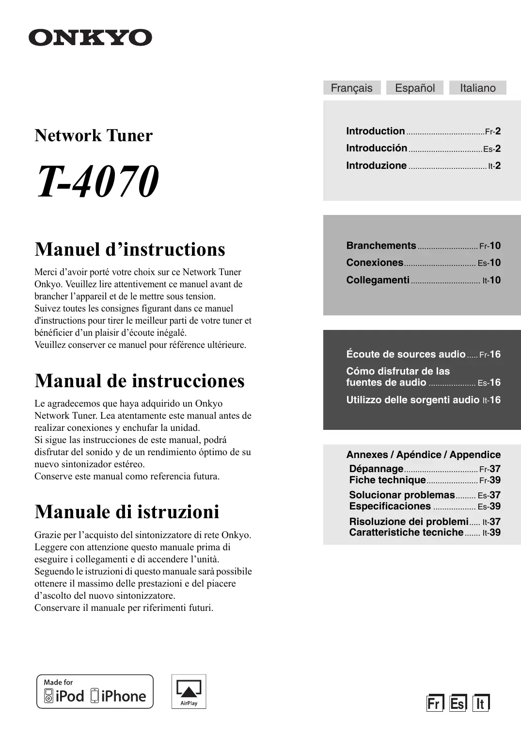 Retrouvez gratuitement la notice de l'appareil T4070 ONKYO au format PDF.