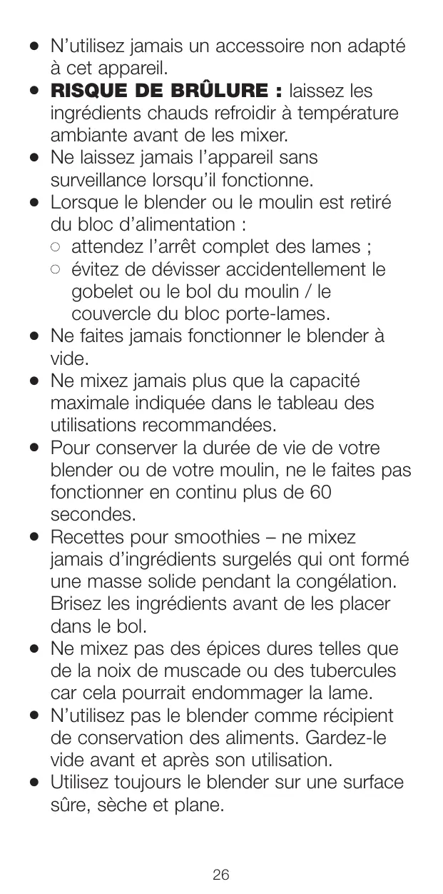 | Entretien et nettoyage | Bol et couvercle lavables au lave-vaisselle, nettoyage des lames à la main recommandé |