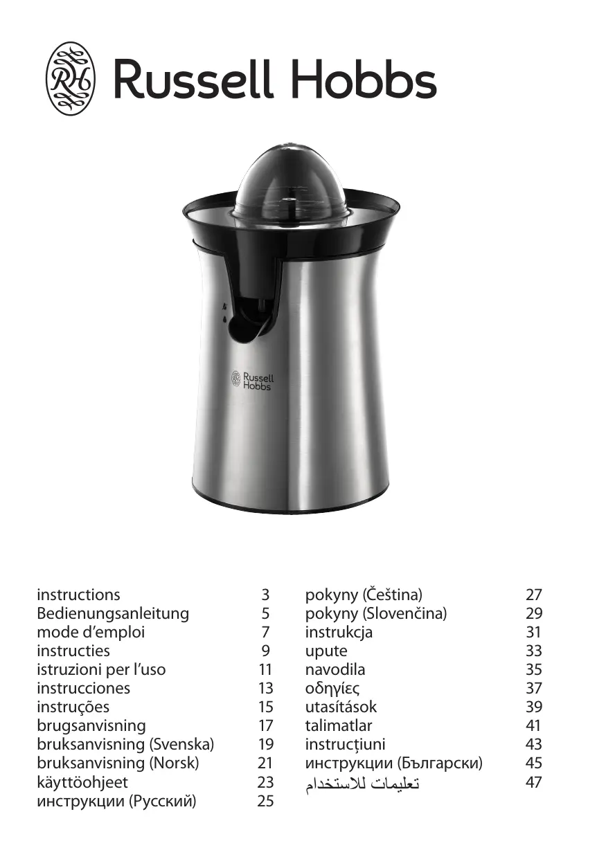 Retrouvez gratuitement la notice de l'appareil CLASSICS 22760-56 RUSSELL HOBBS au format PDF.
