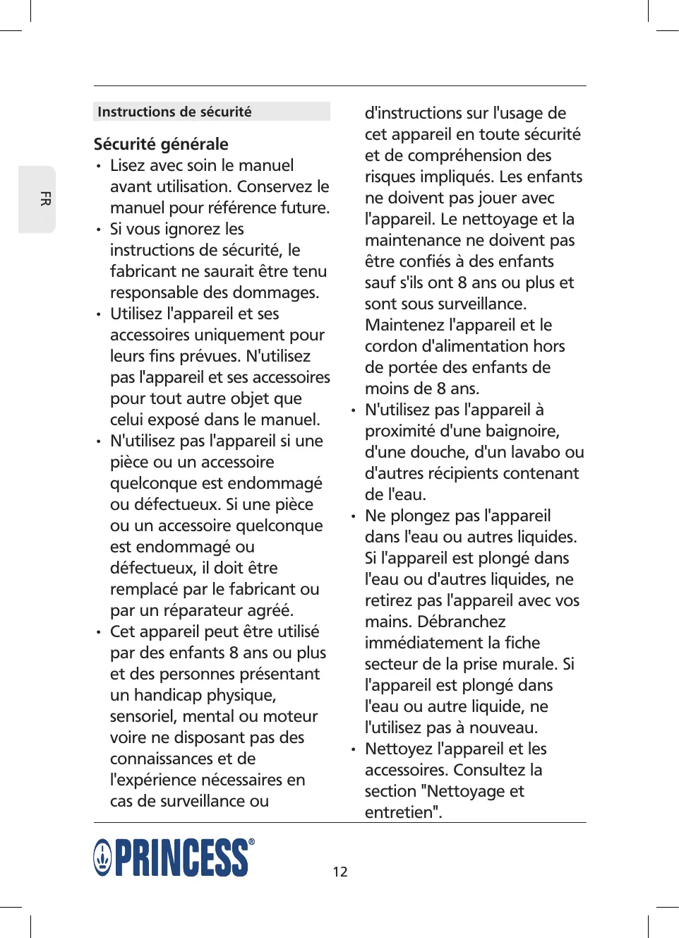 Retrouvez gratuitement la notice de l'appareil 212042.01.001 PRINCESS au format PDF.