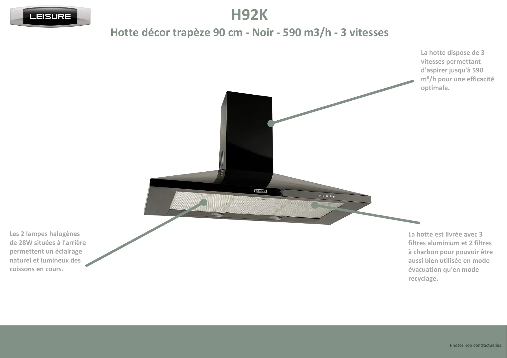 H92K - Hotte aspirante LEISURE - Notice d'utilisation et mode d'emploi gratuit