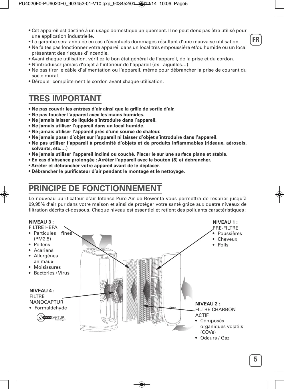 MODE D'EMPLOI INTENSE PURE AIR PU4020 ROWENTA