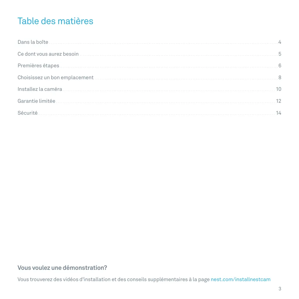 - Sécurité Vous voulez une démonstration? Vous trouverez des vidéos d’installation et des conseils supplémentaires à la page nest.com/installnestcam p. 14