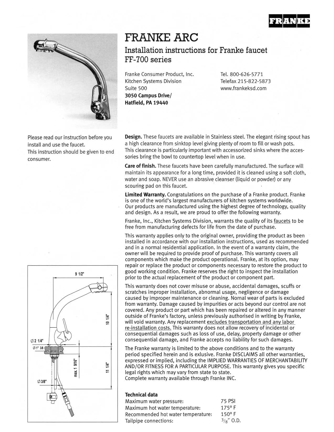 ARCH FAR - Robinet FRANKE - Notice d'utilisation et mode d'emploi gratuit