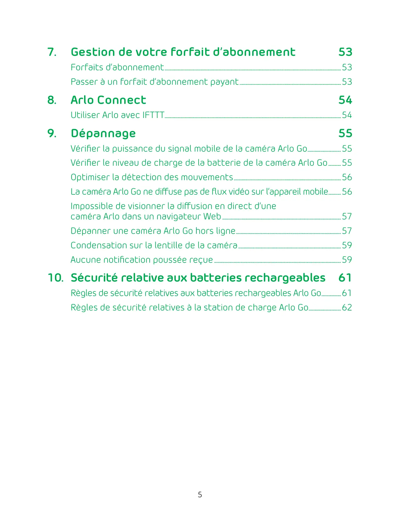 - Dépanner une caméra Arlo Go hors ligne p. 57