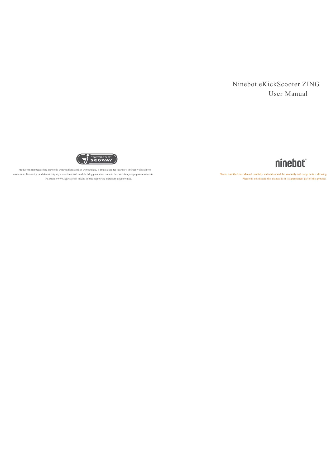Retrouvez gratuitement la notice de l'appareil BY SEGWAY E10 ZING NINEBOT au format PDF.