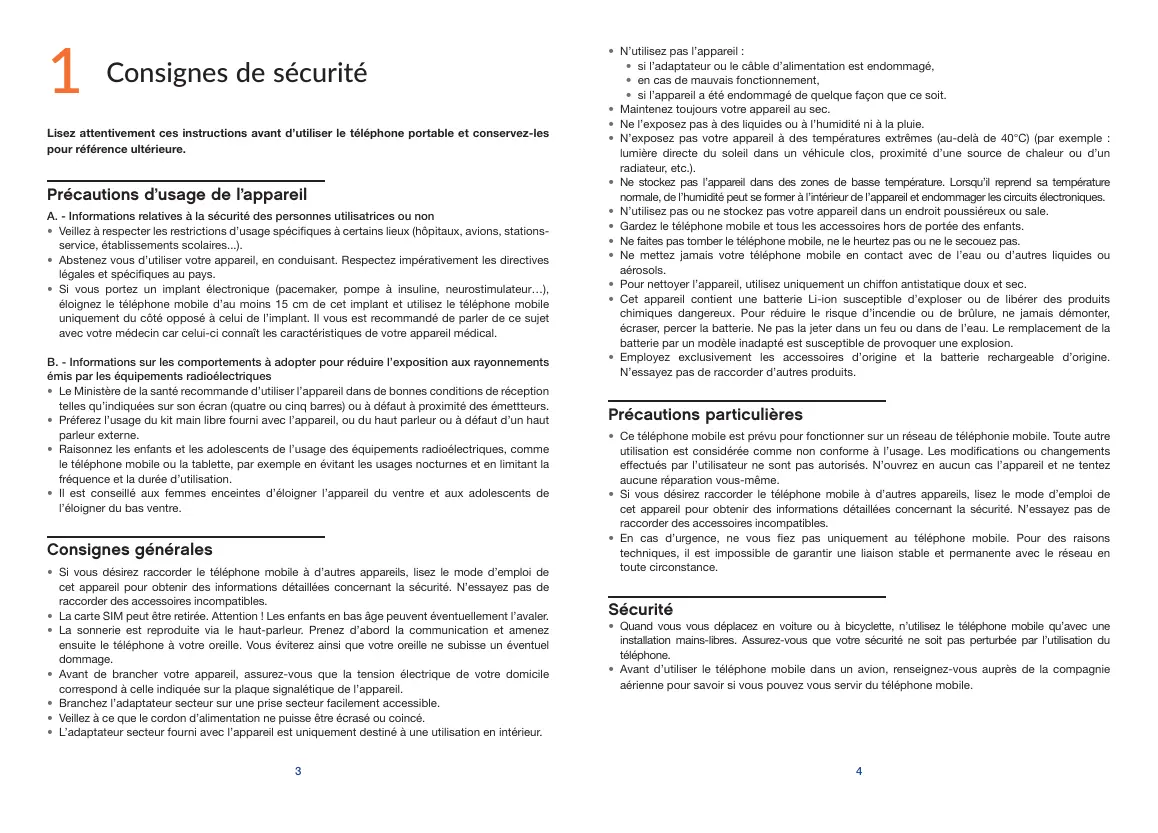 Lisez attentivement ces instructions avant d'utiliser le téléphone portable et conservez-les pour reférence ultérieure.
