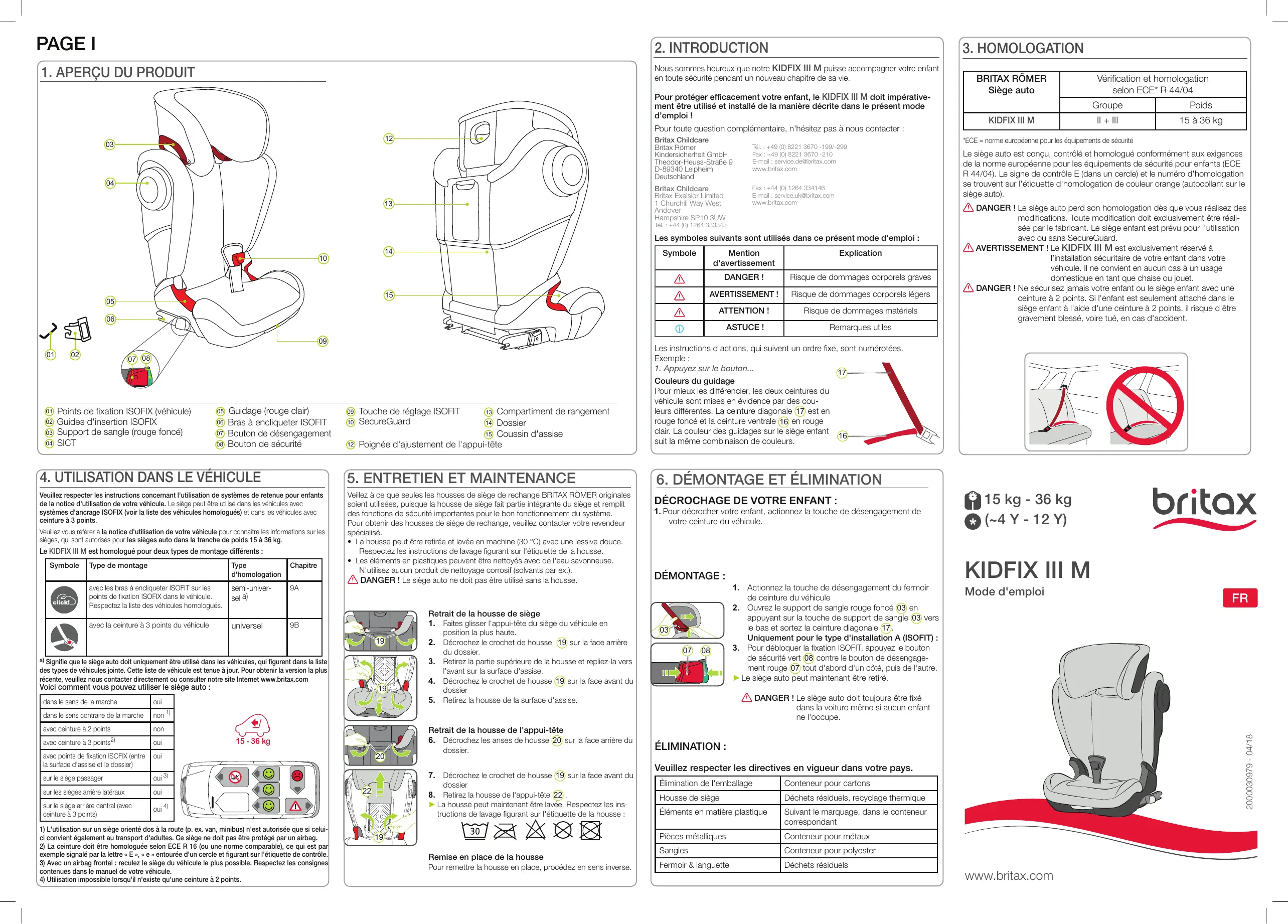 KIDFIX III M - Siège auto BRITAX - Notice d'utilisation et mode d'emploi gratuit