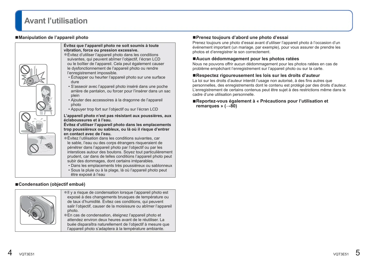 - Précautions pour l’utilisation et remarques VQT3E51 p. 80