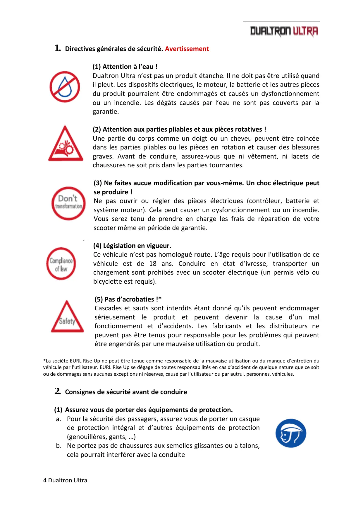 MINIMOTORS DUALTRON ULTRA - Directives générales de sécurité. Avertissement - 1
