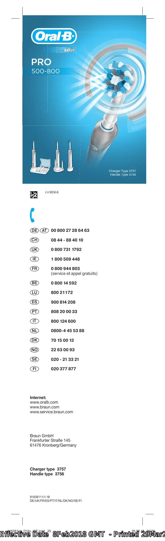 Retrouvez gratuitement la notice de l'appareil PRO 1 750 CROSSACTION ORAL-B au format PDF.