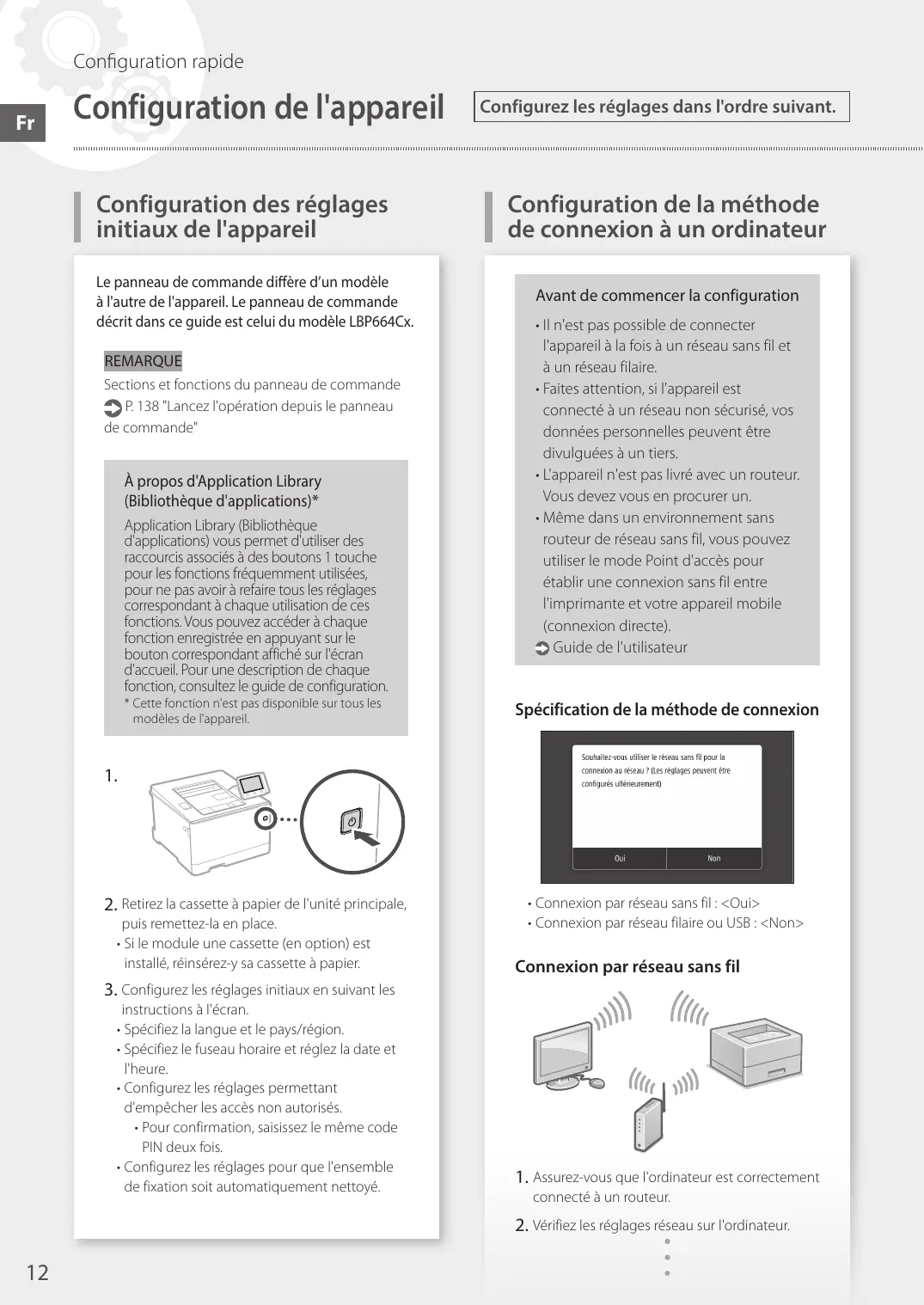 Configuration des réglages initiaux de l'appareil Le panneau de commande diffère d’un modèle à l'autre de l'appareil. Le panneau de commande décrit dans ce guide est celui du modèle LBP664Cx. REMARQUE Sections et fonctions du panneau de commande P. 138 "Lancez l'opération depuis le panneau de commande"