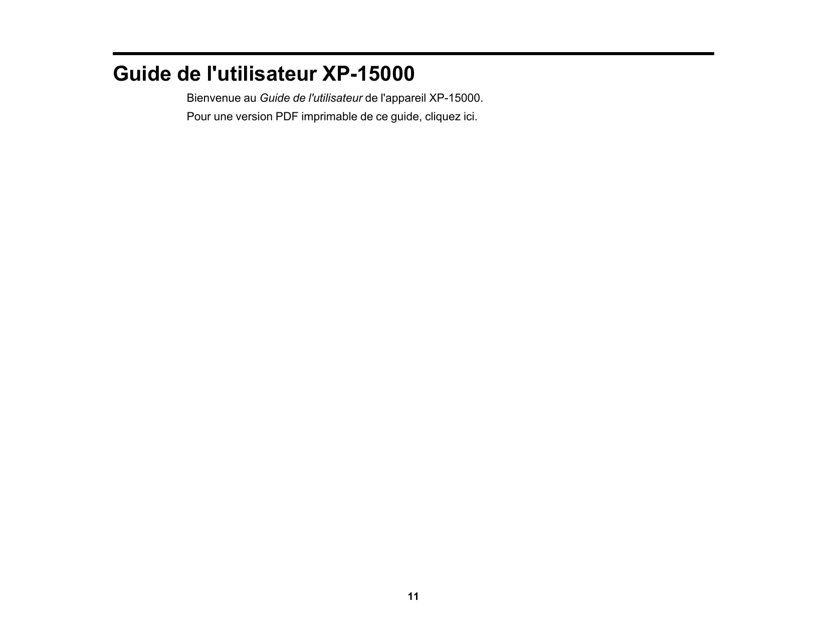 Guide de l'utilisateur XP-15000 Bienvenue au Guide de l'utilisateur de l'appareil XP-15000. Pour une version PDF imprimable de ce guide, cliquez ici.