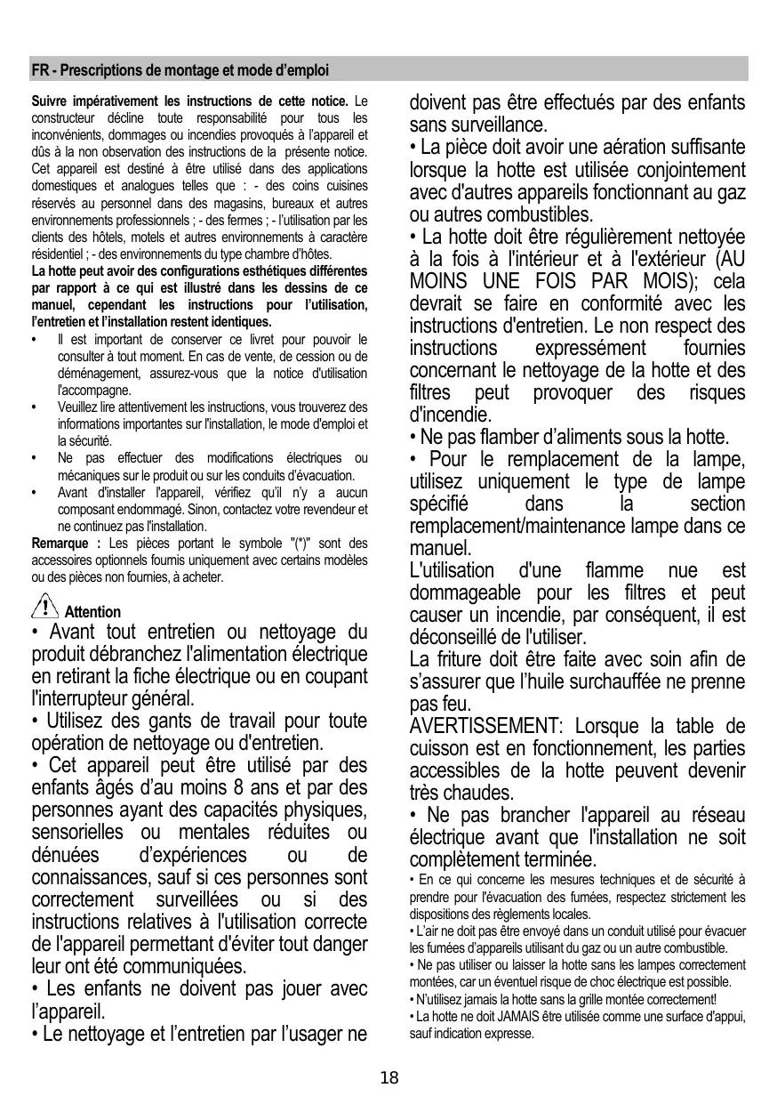 | Type d'évacuation | Évacuation extérieure ou recyclage |