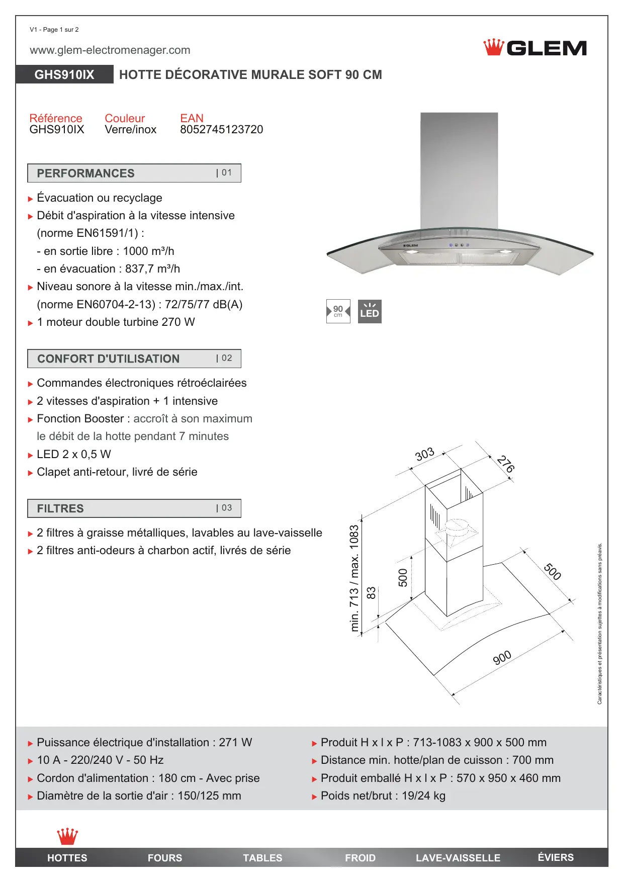 GHS910IX - Hotte de cuisine GLEM - Notice d'utilisation et mode d'emploi gratuit