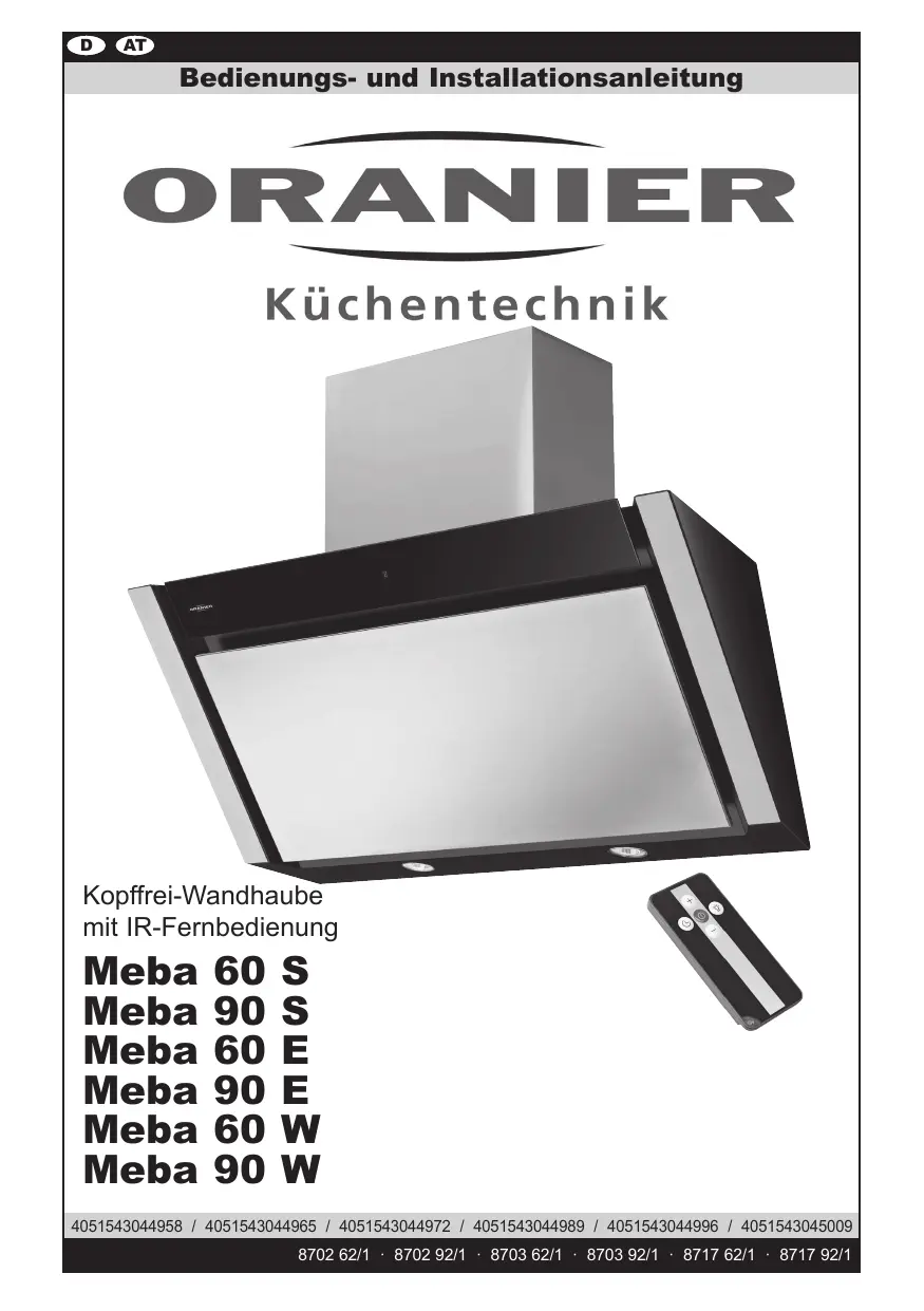 MEBA S - Hotte aspirante ORANIER - Notice d'utilisation et mode d'emploi gratuit