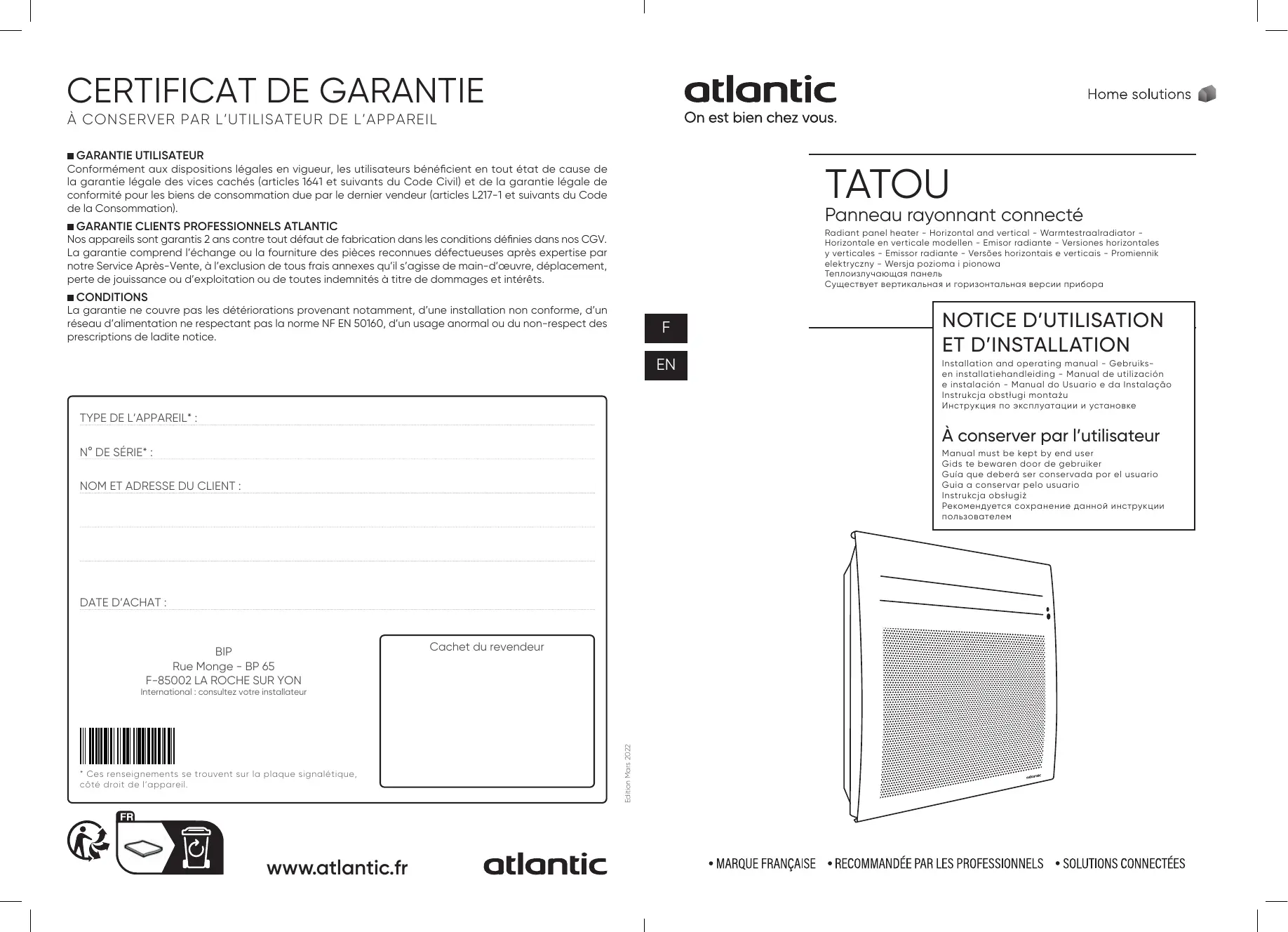 TATOU - Radiateur électrique ATLANTIC - Notice d'utilisation et mode d'emploi gratuit
