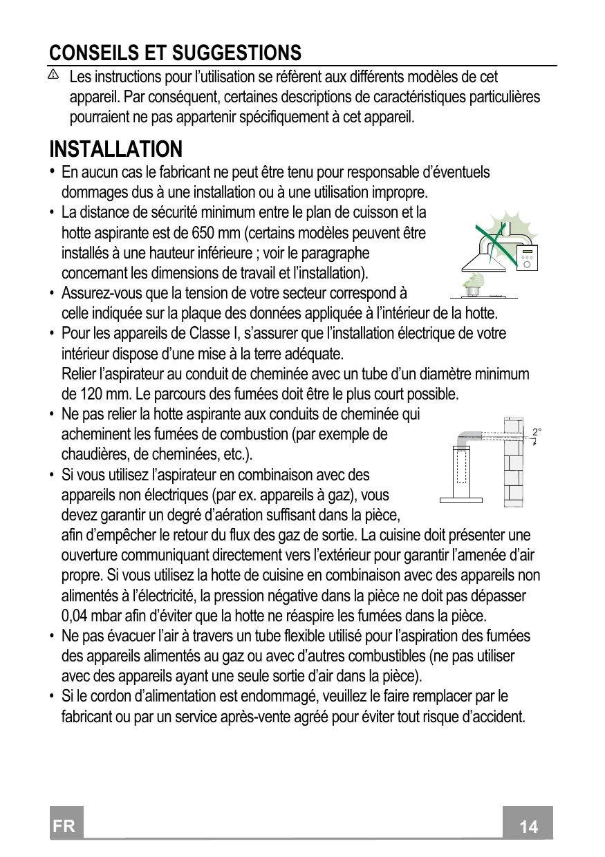 - Ne jamais laisser un feu vif allumé sous la hotte lorsque celle-ci est en fonction.
