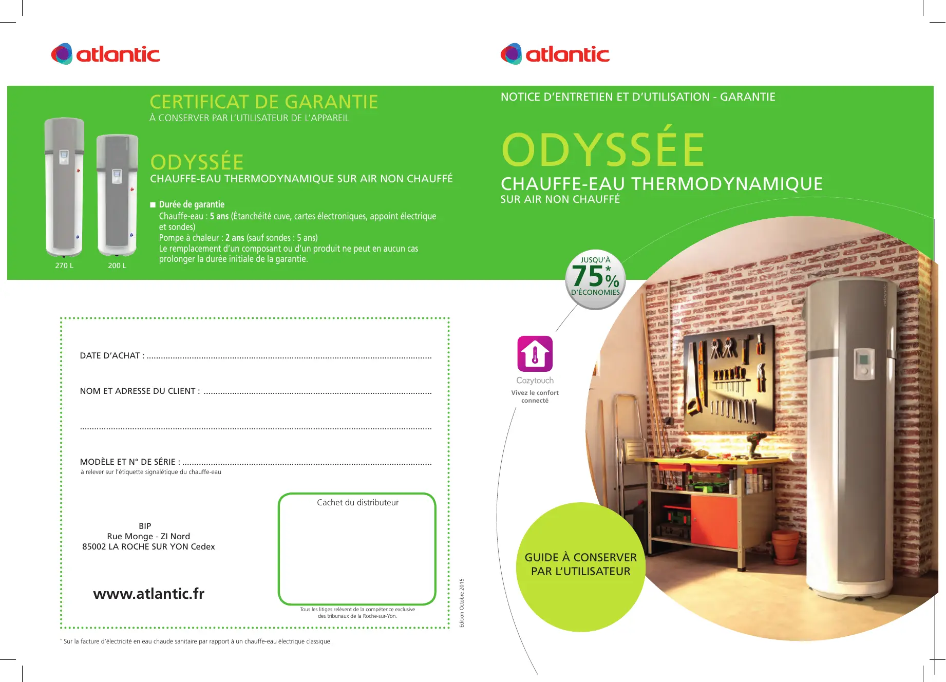 ODYSSEE - Chauffe-eau thermodynamique ATLANTIC - Notice d'utilisation et mode d'emploi gratuit