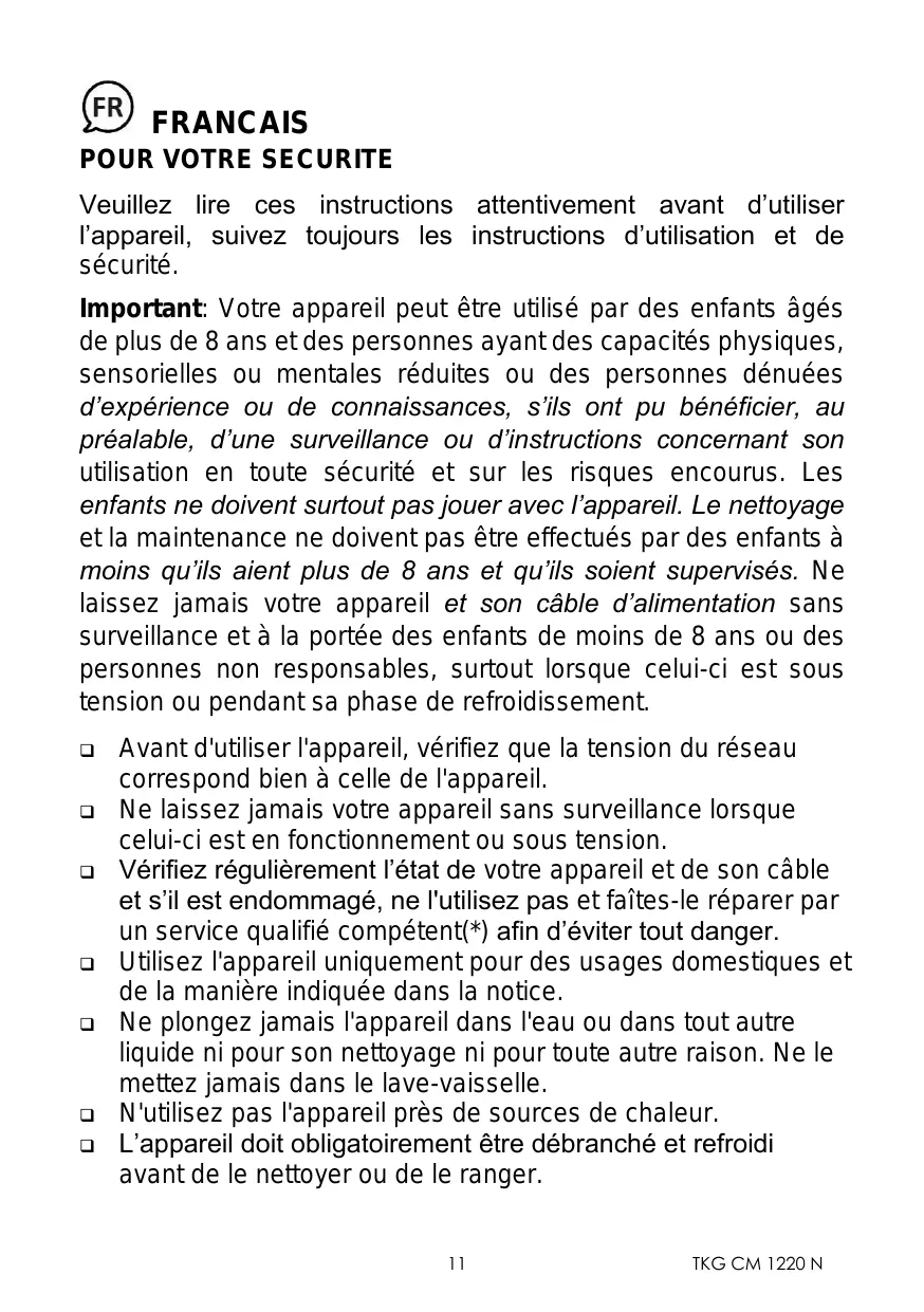 TGK CM 1220 - KALORIK - Notice d'utilisation et mode d'emploi gratuit