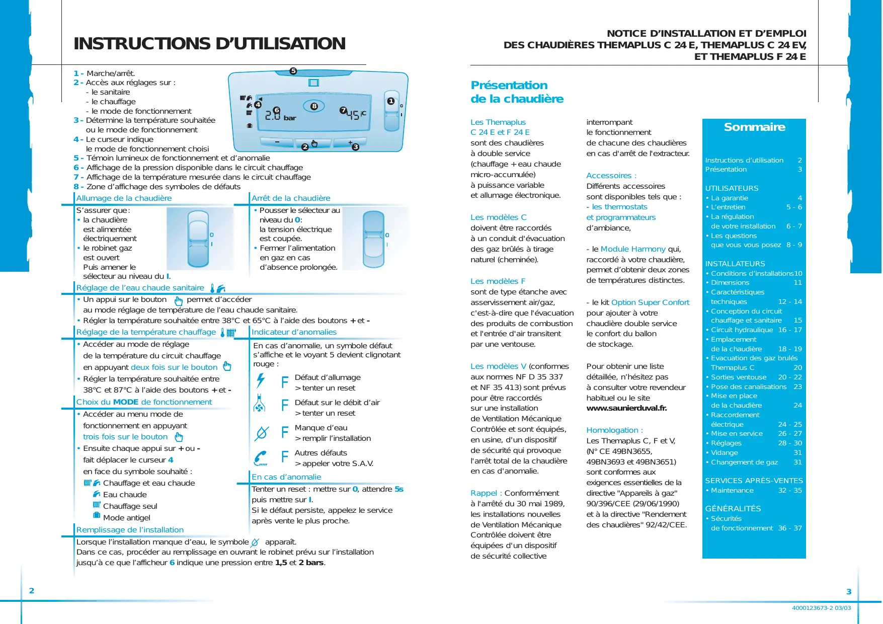 MODE D'EMPLOI THEMA PLUS F24/30EV SAUNIER DUVAL