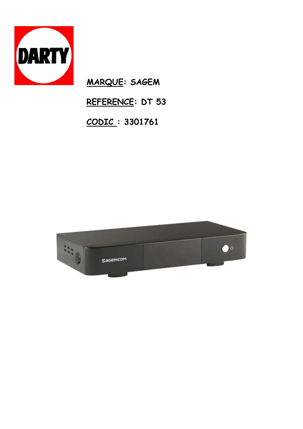 DT 53 - Décodeur TV SAGEMCOM - Notice d'utilisation et mode d'emploi gratuit