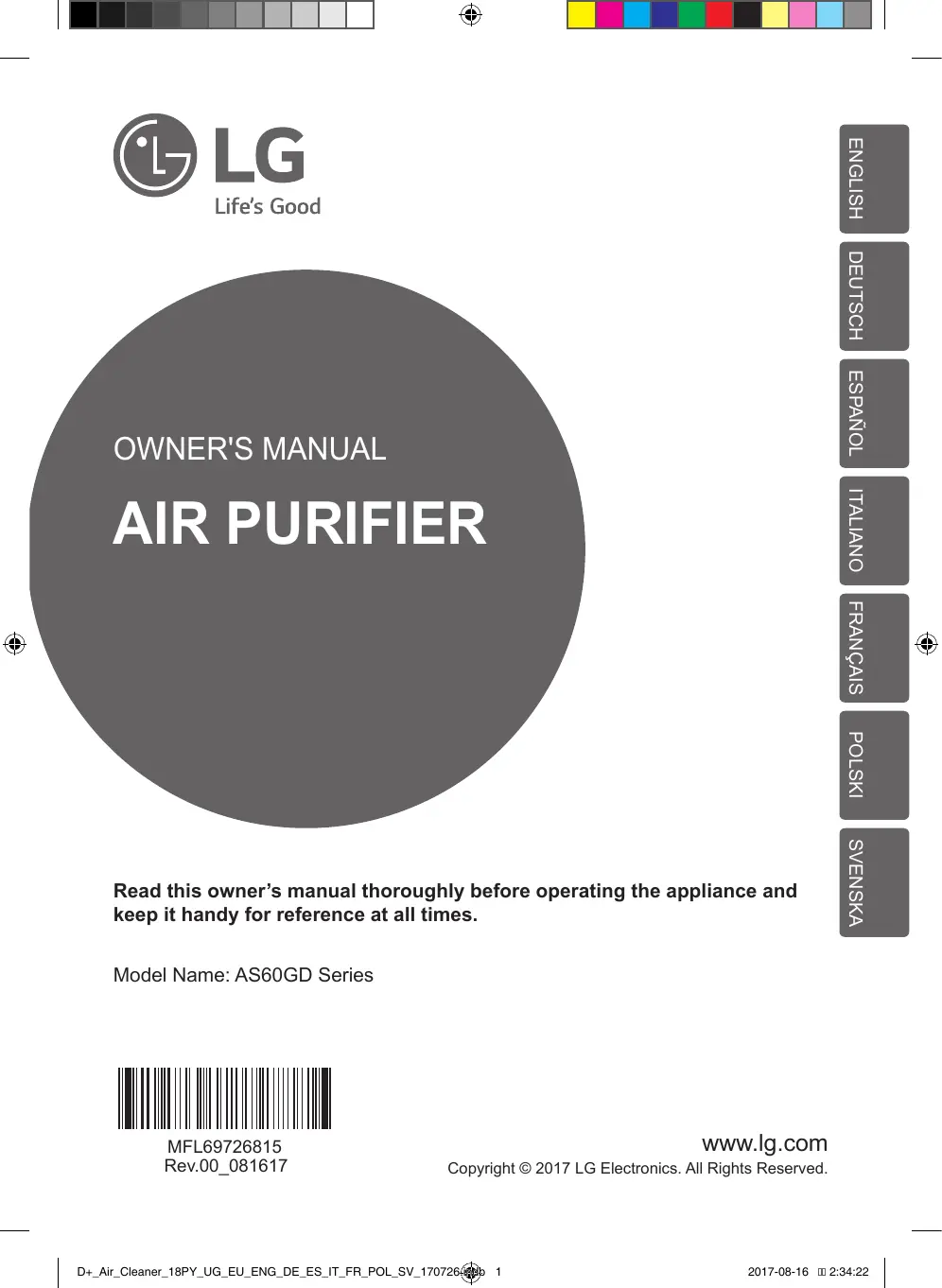 Retrouvez gratuitement la notice de l'appareil AS60GDWV0 LG au format PDF.