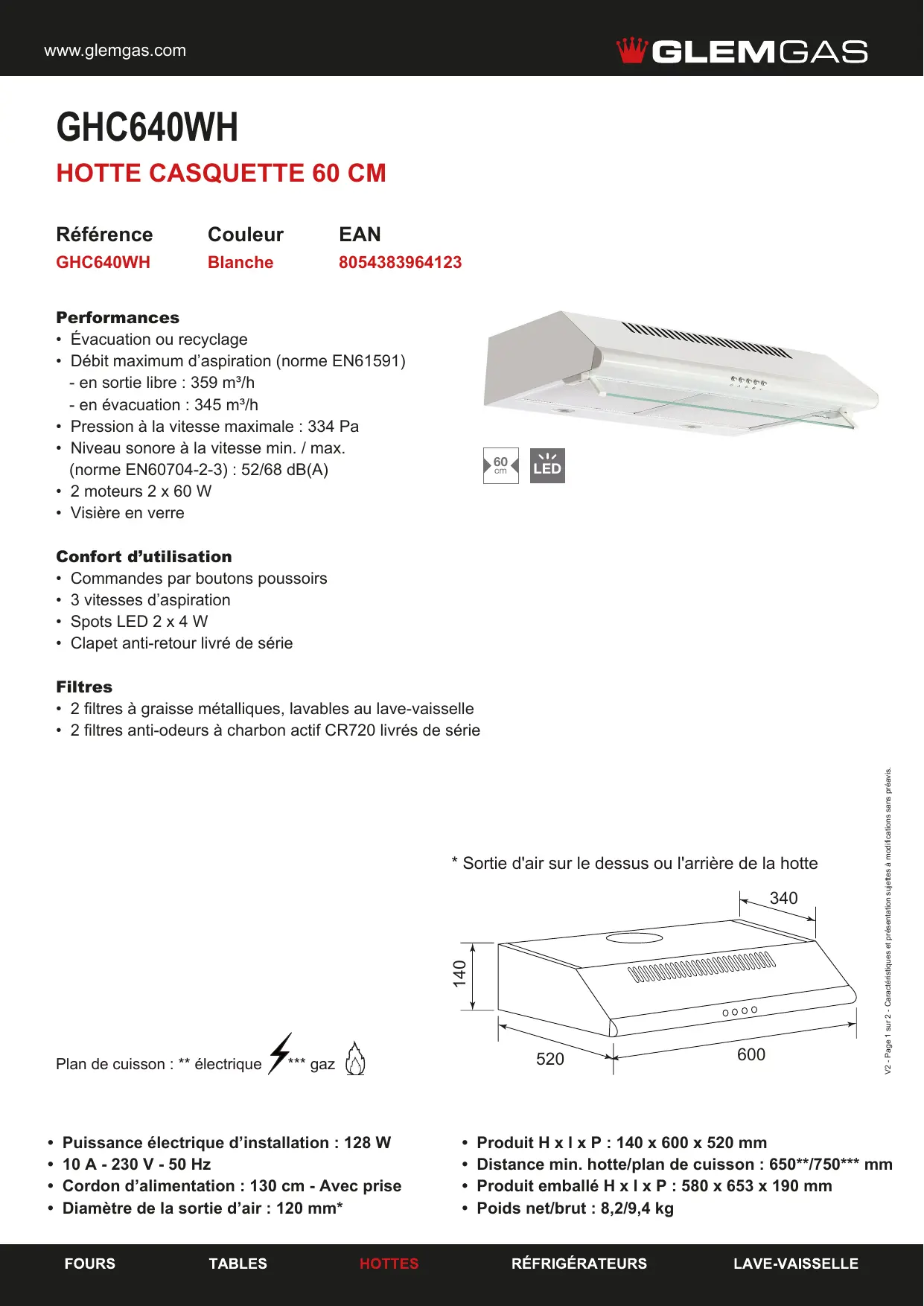 GHC640WH - GLEM - Notice d'utilisation et mode d'emploi gratuit