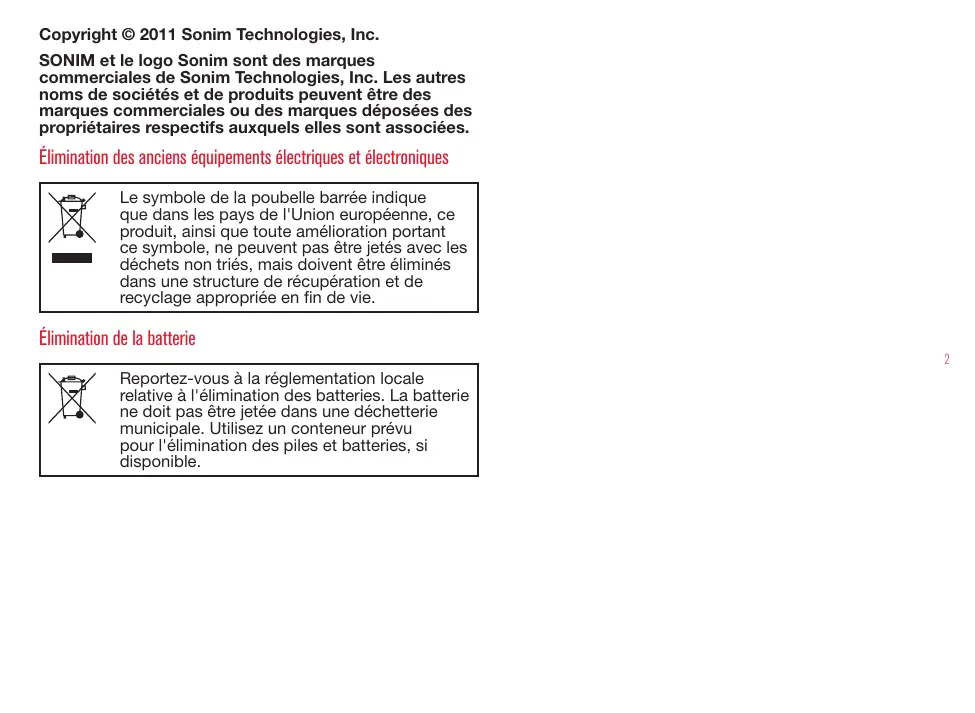 SONIM et le logo Sonim sont des marques commerciales de Sonim Technologies, Inc. Les autres noms de sociétés et de produits peuvent être des marques commerciales ou des marques déposées des propriétaires respectifs auxquels elles sont associées.