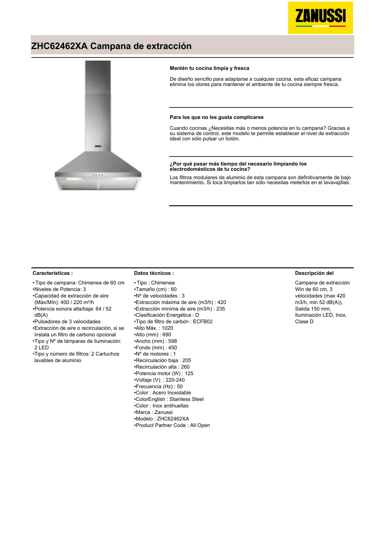 Retrouvez gratuitement la notice de l'appareil ZHC62462XA ZANUSSI au format PDF.