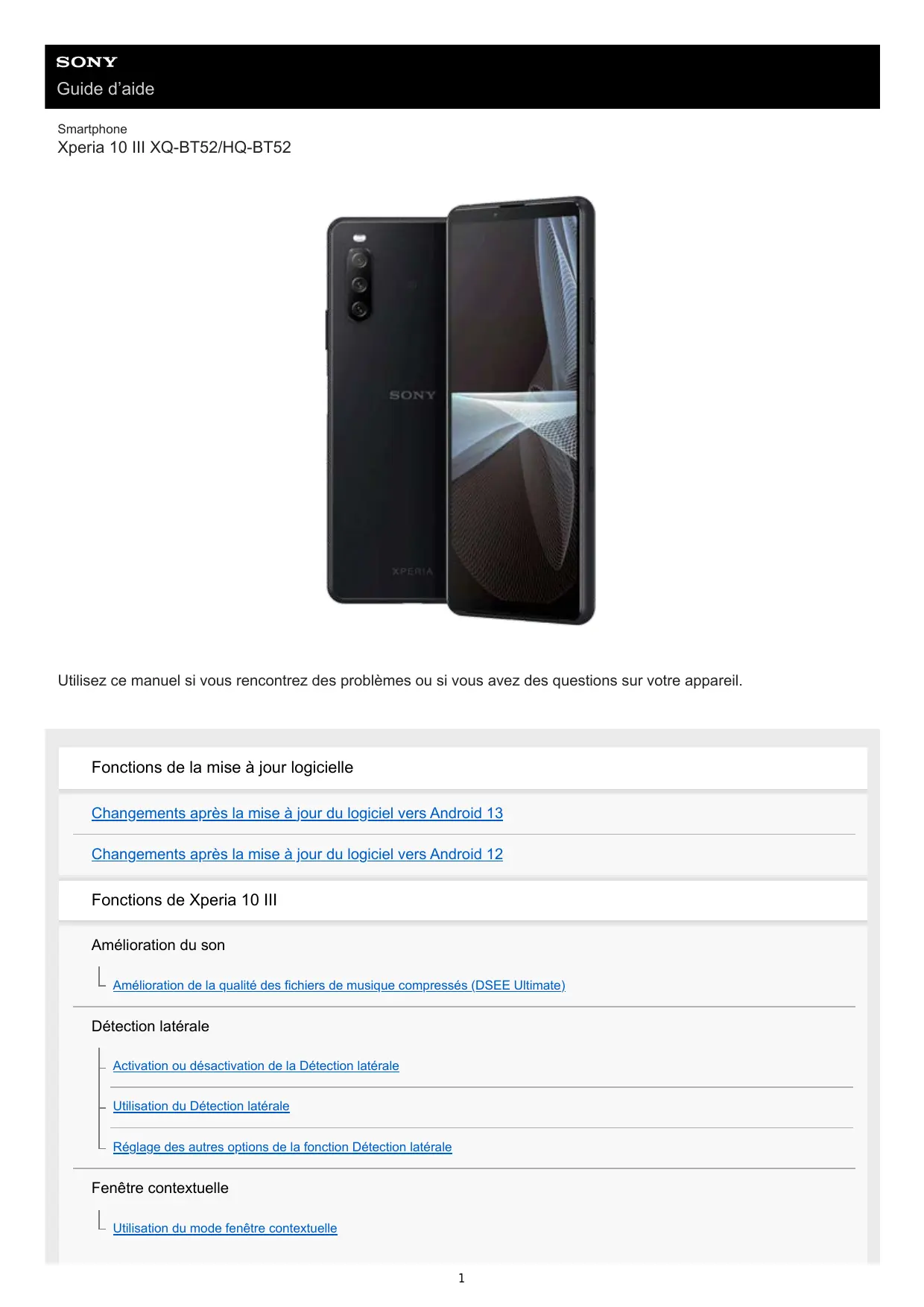 Retrouvez gratuitement la notice de l'appareil XPERIA 10 III SONY au format PDF.