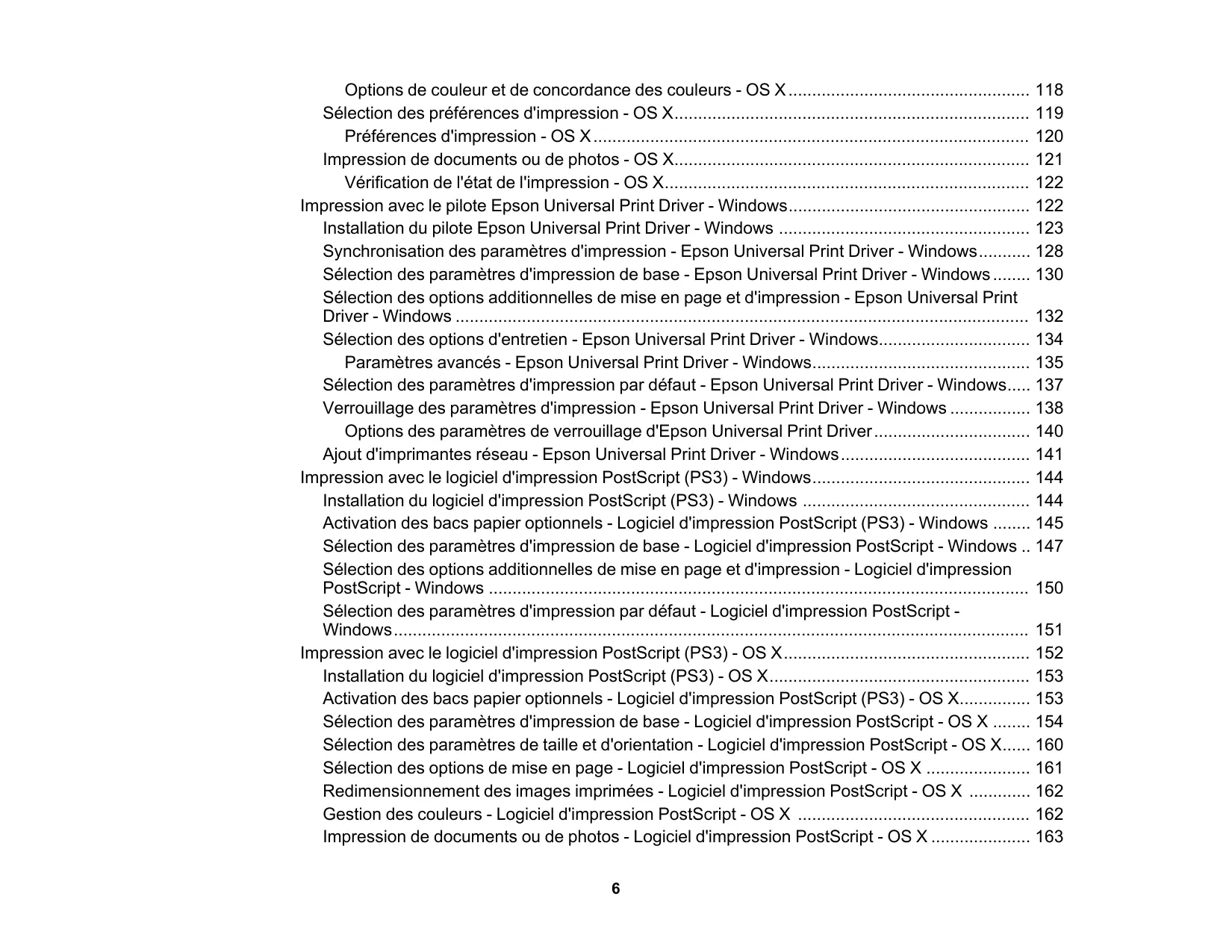 - Installation du pilote Epson Universal Print Driver - Windows p. 123