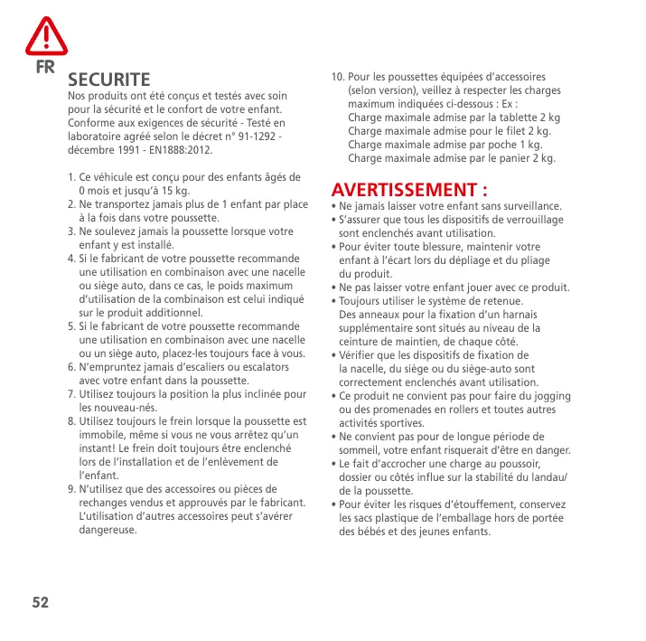 Nos produits ont été conçus et testés avec soin pour la sécurité et le confort de votre enfant. Conforme aux exigences de sécurité - Testé en laboratoire agréé selon le décret n° 91-1292 décembre 1991 - EN1888:2012.