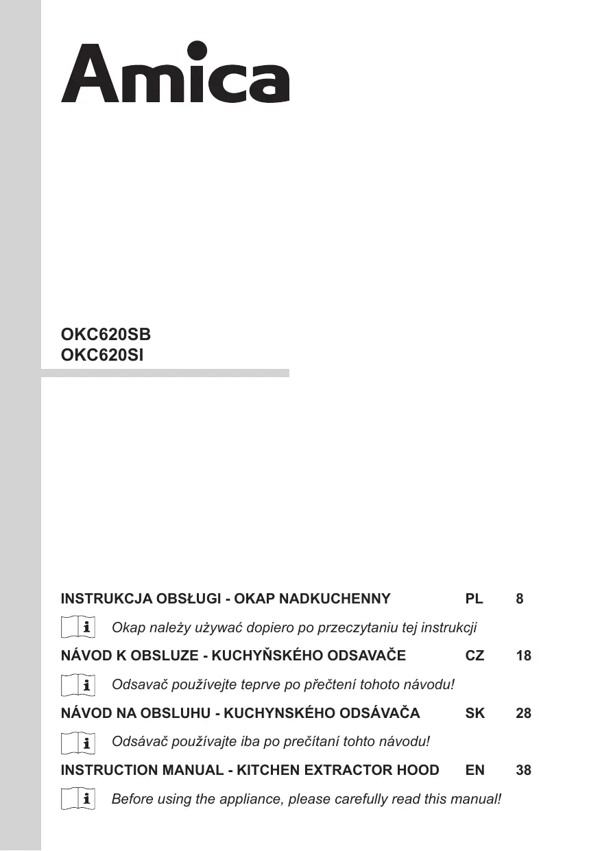 OKC620SB - Hotte aspirante AMICA - Notice d'utilisation et mode d'emploi gratuit