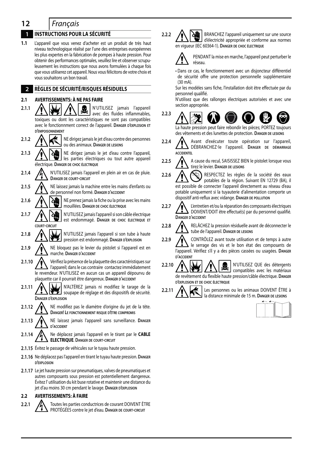 2.1.16 Ne déplacez pas l’appareil en tirant le tuyau haute pression. DANGER D’EXPLOSION