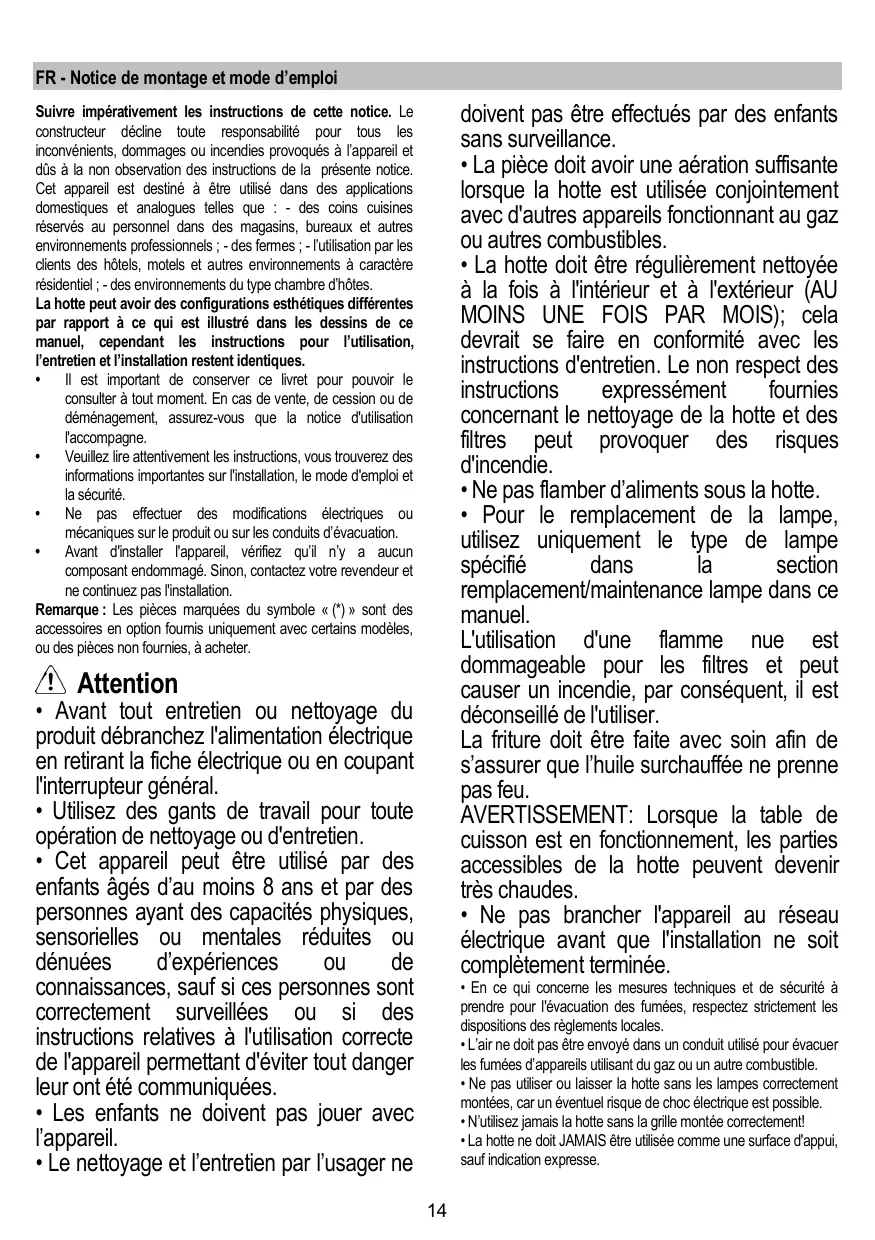 Retrouvez gratuitement la notice de l'appareil TUBE PRO ISLAND ELICA au format PDF.