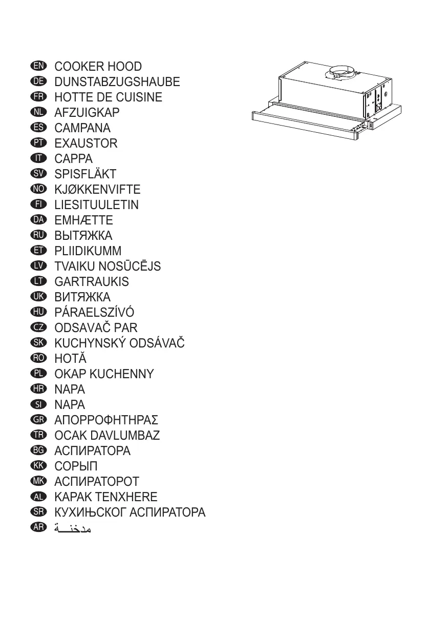 - Cette hotte aspirante a été conçue exclusivement pour un usage domestique, dans le but d'éliminer les odeurs de cuisine.