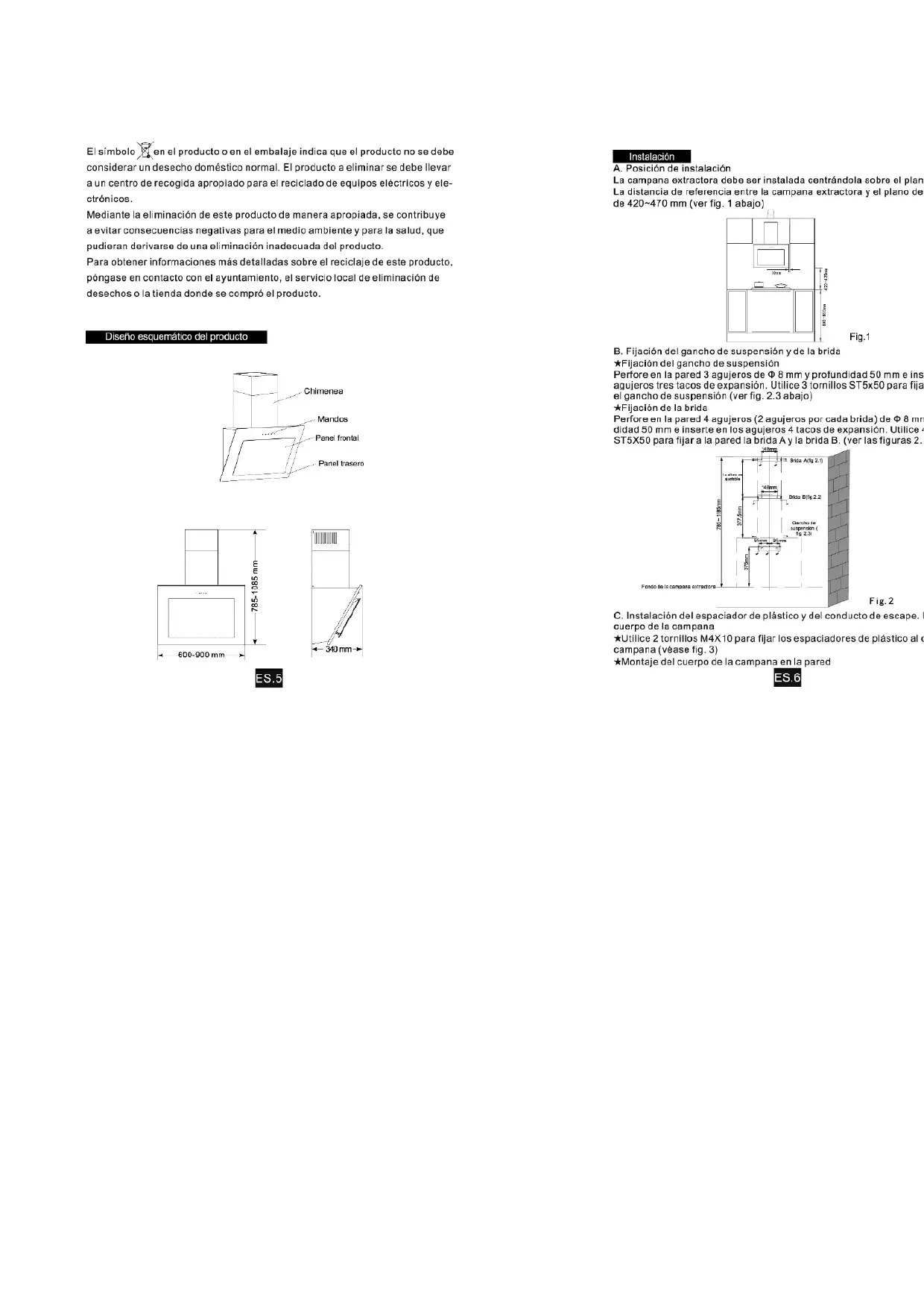 | Distance d'installation | 420-470 mm (distance de référence entre la hotte et la plaque de cuisson) |