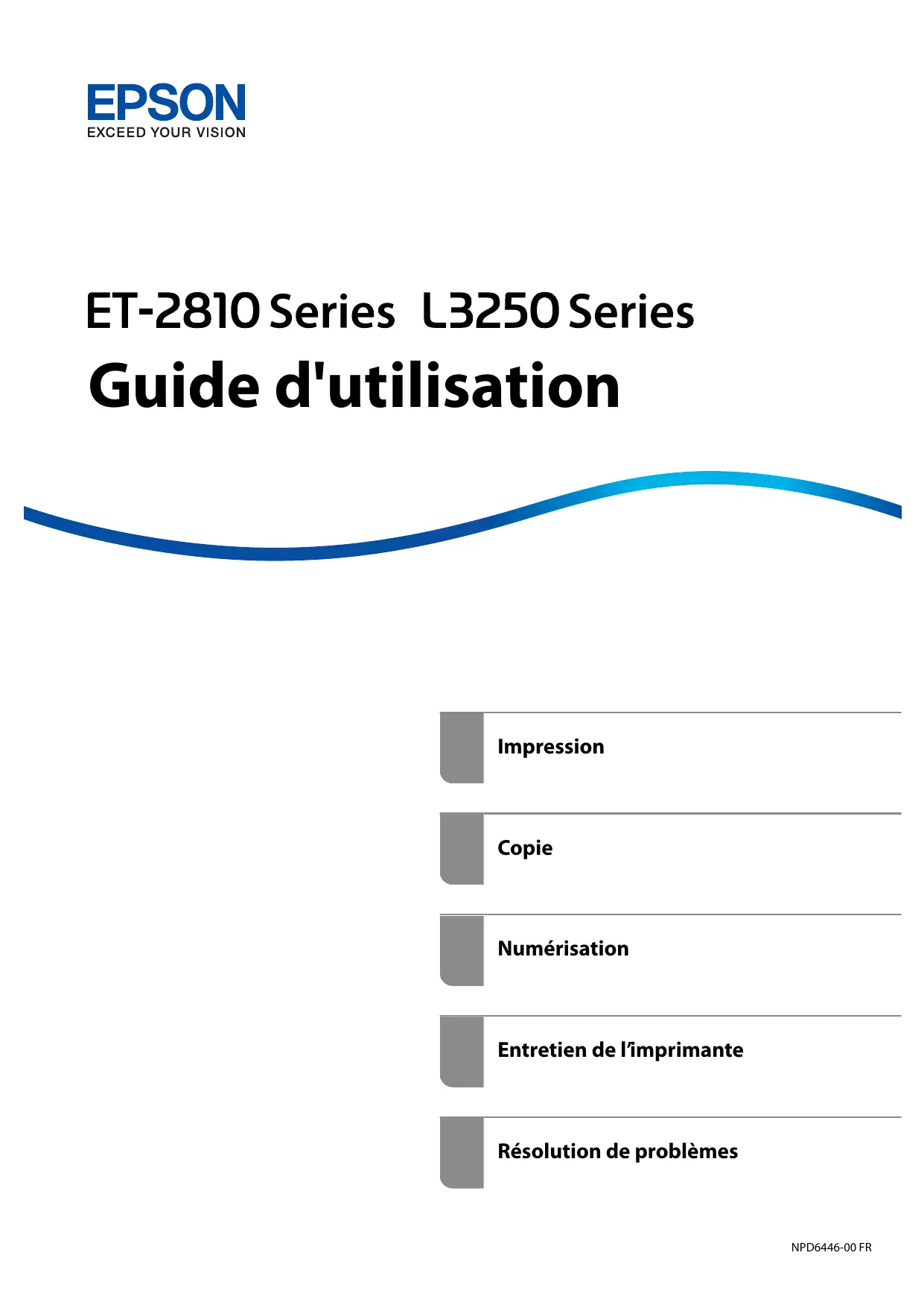 Téléchargez la notice de votre Imprimante multifonction à réservoir d'encre au format PDF gratuitement ! Retrouvez votre notice ET-2810 - EPSON et reprennez votre appareil électronique en main. Sur cette page sont publiés tous les documents nécessaires à l'utilisation de votre appareil ET-2810 de la marque EPSON.