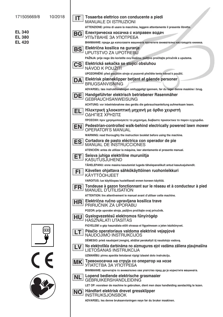 HR Elektricna ručno upravljana kosilica trave PRIRUČNIK ZA UPORABU