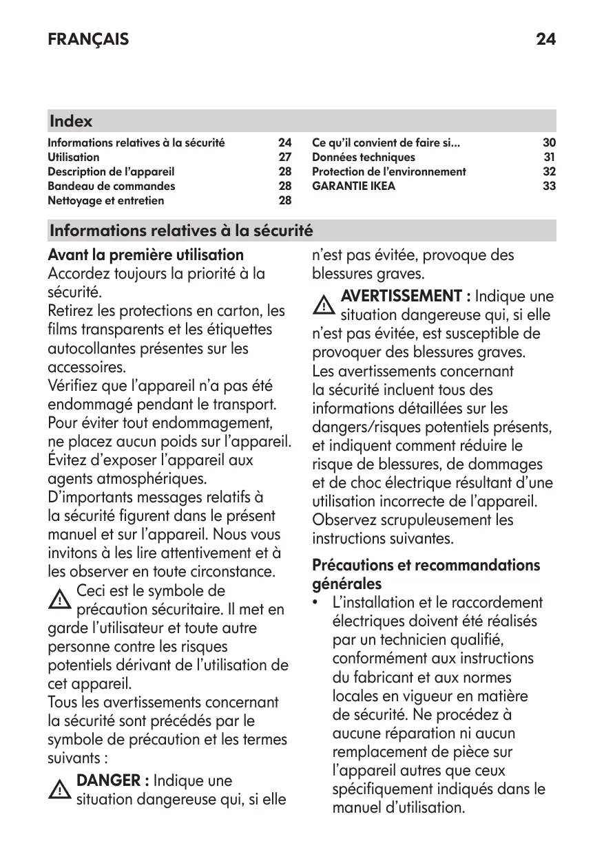 Ce qu’il convient de faire si... Données techniques Protection de l’environnement GARANTIE IKEA