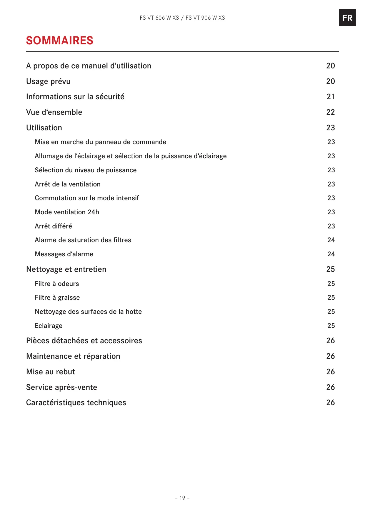 de l‘utilisation de la hotte, respectez les manuels de la cuisinière et des appareils de cuisson utilisés sous la hotte ou pendant le fonctionnement de la hotte.