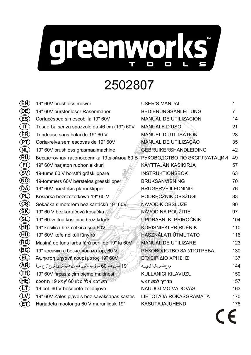 Retrouvez gratuitement la notice de l'appareil GD60LM46HPK4 GREENWORKS au format PDF.