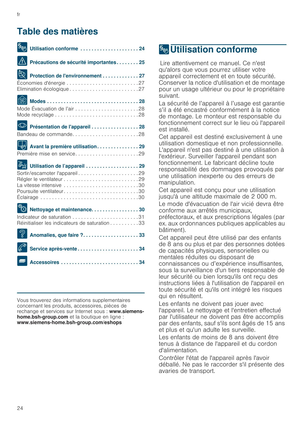 Vous trouverez des informations supplementaires concernant les produits, accessoires, pièces de rechange et services sur Internet sous : www.siemenshome.bsh-group.com et la boutique en ligne : www.siemens-home.bsh-group.com/eshops