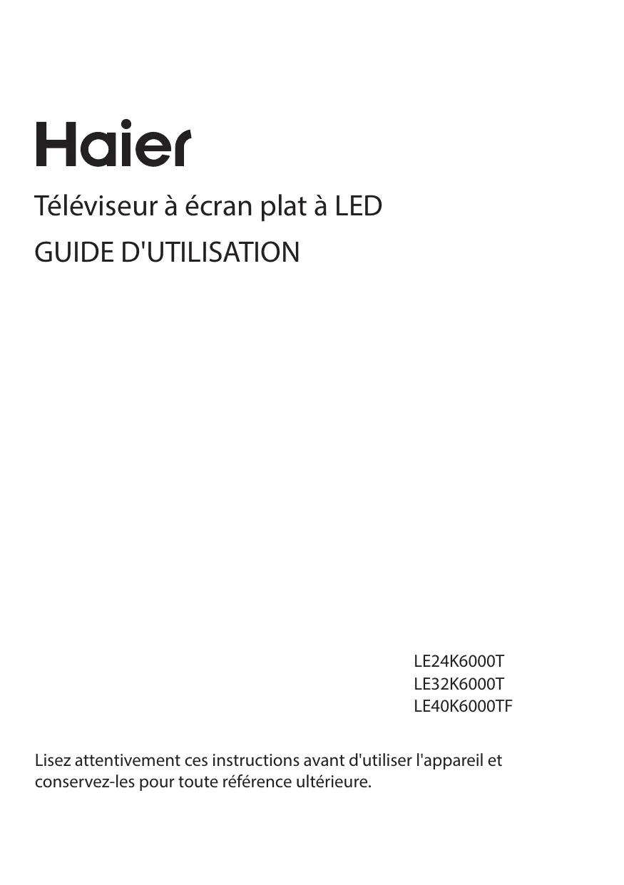 LE32K6000T TA©LA©VISION LED 80 CM EGP/PRO/HOSPITALITY - Télévision HAIER - Notice d'utilisation et mode d'emploi gratuit